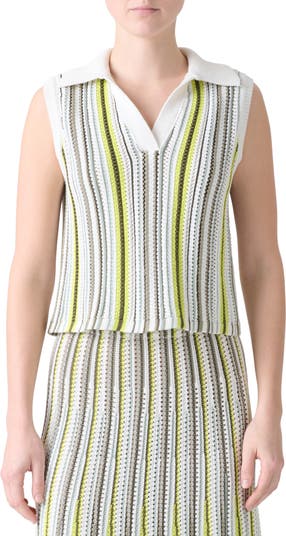 Stripe Mixed Stitch Sleeveless Polo Sweater