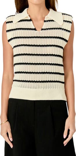 Stripe Open Stitch Collar Sweater Vest