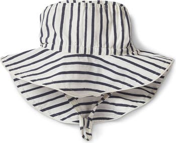 The ultimate summer accessory, this soft and breathable bucket hat is a warm-weather essential they'll wear all summer long. Made from woven organic cotton, it features an elastic back for a comfy fit and a sturdy yet flexible brim to help shield little faces from the sun. Baby sizes include a chin strap for a security, while toddler sizes are strap-free for easy on and off.