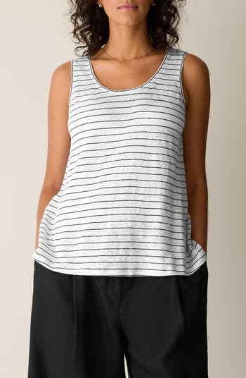 Love to layer in this striped tank crafted from organic linen for a soft and smart look.
