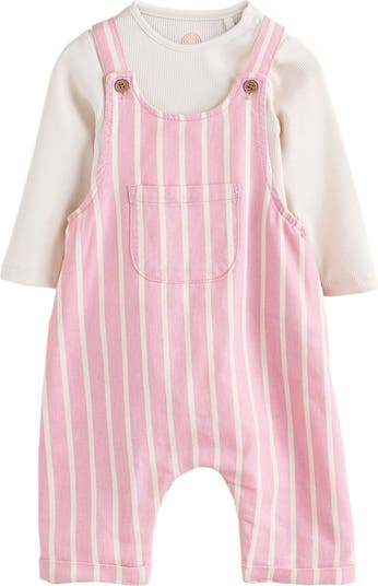 Your little one will be as cute as can be in this comfy ensemble featuring a long-sleeve T-shirt and striped overalls.