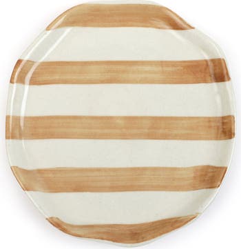 Add a punch of color to your table with the painted stripes of this stoneware plate you can easily mix and match to create a casually welcoming setting.