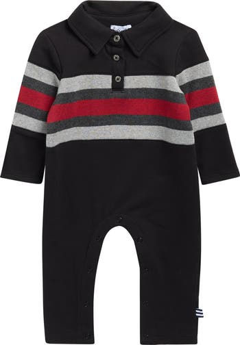 This long-sleeve romper cut from the label's signature splendidly soft jersey is given a classic prepster update with colorblocked stripes and a polo-style collar.