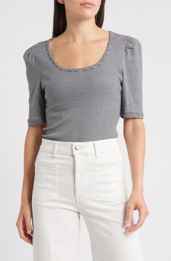 Stripe Puff Sleeve Scoop Neck T-Shirt