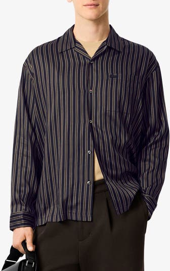 Bold vertical stripes and a relaxed camp collar bring easy refinement to this lightweight button-up shirt made for laid-back polish.
