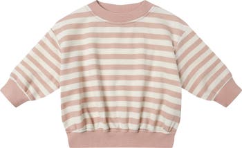 Organic cotton is enhanced with a touch of stretch on an everyday sweatshirt featuring a relaxed fit and patterned in classic stripes.