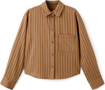 Lustrous rhinestones add texture and shine to this crisp poplin shirt covered in polished stripes.