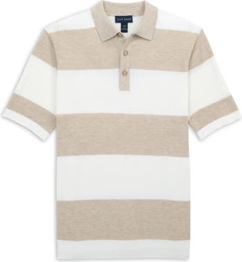 This ribbed-to-fit polo sweater is topped with a smart collar and covered with chunky stripes.