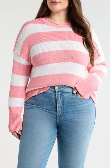Enliven chilly days and layered looks with this boldly striped sweater knit with dropped shoulders and a cozy roll neck.