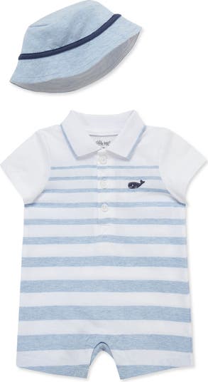 Keep your little one looking their best in this adorable set featuring a stripe polo-style romper paired with a coordinating hat.
