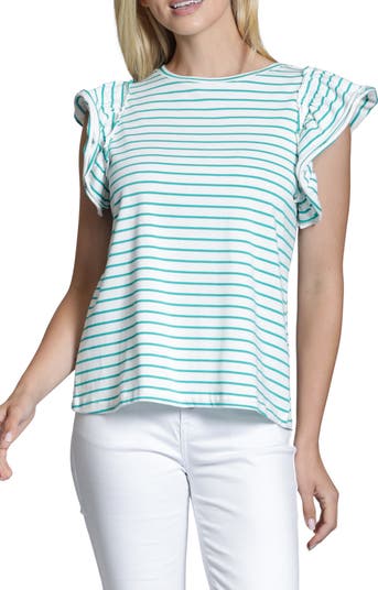 Raw-hem ruffles put a pretty frame on this stripe slub-cotton T-shirt that's a fresh alternative to your go-to stack of crewnecks.