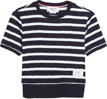 Stripe Scallop Edge Short Sleeve Cotton Rib Sweater