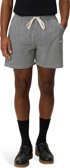 Seersucker season, sorted: recycled polyester with a rippled, sandy-skin feel that brings serious texture to a clean silhouette. Finished with an easy drawstring waist, it’s made for shoreline strolls and poolside scenes.