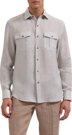 Stripe Shaped Fit Linen Button-Up Shirt