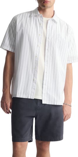 Stripe Short Sleeve Cotton Button-Up Shirt