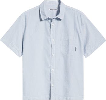 A boxy fit helps keep you cool in this striped cotton button-up shirt framed with short sleeves and done with a rinse wash for a soft handfeel.