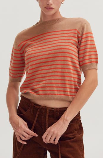 Stripe Short Sleeve Sweater Top