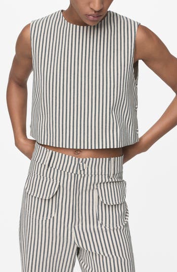 Covered buttons trim the sides of this cropped sleeveless top cut from a soft cotton-kissed blend.