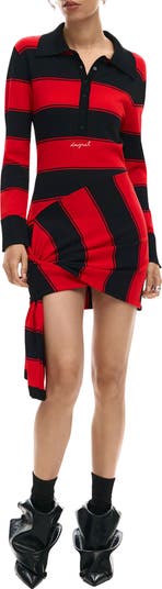 Bold stripes enhance the varsity-inspired vibes of this polo mini made with a swingy side drape.