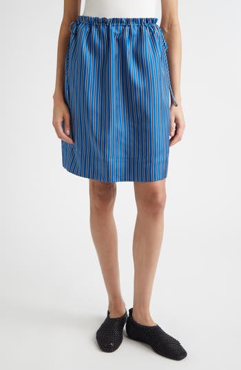 This vibrant skirt is cut from lustrous striped silk twill and cinched with drawstrings that dangle gracefully down the sides.
