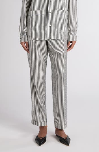 A subtle cadence of neat stripes runs through airy silk to give these pajama pants a refined rhythm with a relaxed fall and a soft handfeel that feels calm and luxurious against the skin.