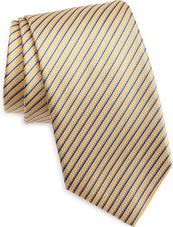 Handmade from lustrous Italian-silk jacquard, this striped tie brings dapper distinction to formal and semiformal attire. It pairs well with smoother fabrics and solid colors, but there's always room for mixing patterns and textures to showcase your personal style.