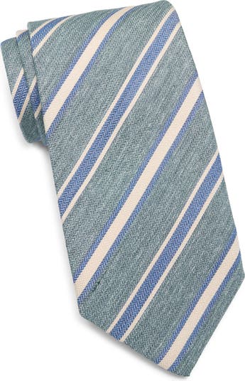 Handmade from lustrous Italian-silk jacquard, this striped tie brings dapper distinction to your semiformal attire. It pairs well with smoother fabrics and solid colors, but there's always room for mixing patterns and textures to showcase your personal style.