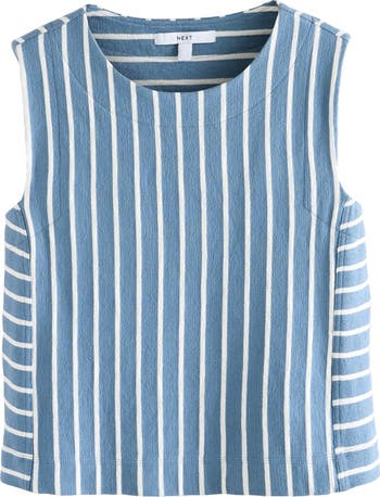 Comfy cotton terry wicks moisture to keep you comfortable under the sun in a sleeveless top punctuated with brisk stripes.