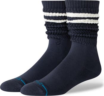 Sporty stripes and slouchy cuffs lend off-duty energy to these cotton-blend crew socks.