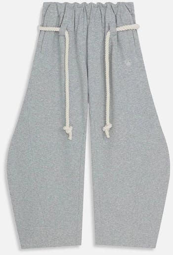 These barrel sweatpants feature a relaxed, baggy silhouette that combines comfort with effortless street style. Designed with an elastic waistband and rope drawstring detail, they ensure a secure yet flexible fit. The clean, stacked drape flatters different body types, while select versions include striped accents or rope decorations for a bold, distinctive touch. A versatile staple for both lounging and street-ready looks.
