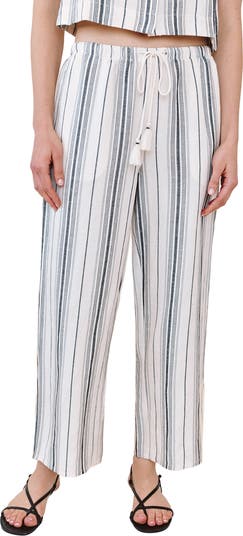 Vertical stripes sharpen the look of these regular-fit drawstring pants made from a lightweight linen blend with swingy tasseled ties.
