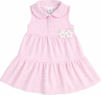Designed for easy transitions from pool to play, this dress is crafted from soft pink and white stripe terry cloth that slips comfortably over a swimsuit. Cheerful appliqué flowers add a sweet touch, while the front button placket gives it a classic, polished finish. Lightweight and absorbent, it works beautifully as a coverup or a stand-alone dress—perfect for beach days, boardwalk strolls, and sunshine-filled adventures.