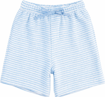 Easy and ready for sunshine, these shorts are crafted from soft blue and white stripe terry cloth that’s perfect for pulling on after a swim. Lightweight and absorbent, they’re designed for comfort whether he’s poolside, at the beach, or heading out to play. An elastic waistband with a drawstring provides an adjustable, secure fit, making them a versatile warm-weather essential for vacations and everyday summer fun.