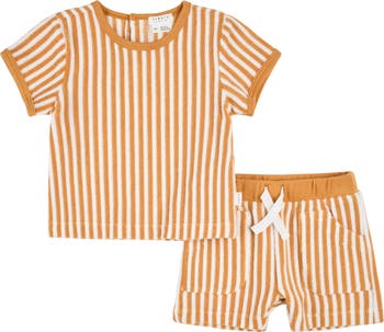 Baby will make sunny days even brighter in this soft terry T-shirt and matching shorts set striped to perfection.