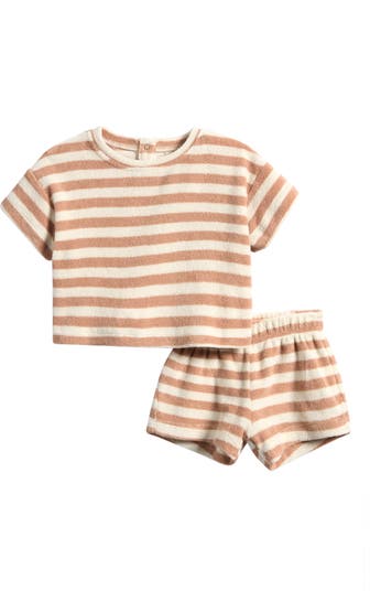 Keep baby comfy as they spend the day crawling and playing in this striped terry set cut from an organic cotton blend for a soft handfeel.