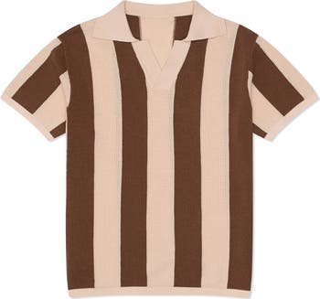 Vertical stripes pop on an airy mesh polo that's finished with a retro johnny collar.