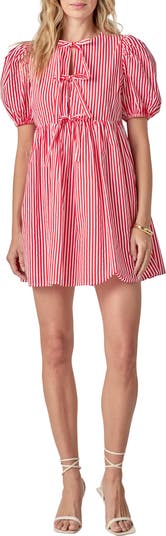 Dainty bows and darling puff sleeves sweeten this breezy cotton mini made with a lightly flared skirt for easy movement.