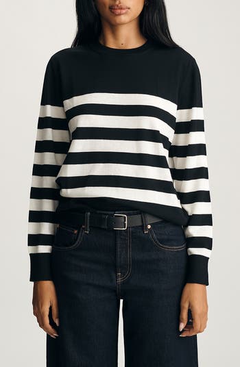 Knit from soft, warm wool yarns, this stripe sweater is clean, classic and ready to become your next go to for easy, versatile layering whether you're opting for polished or more casual looks.