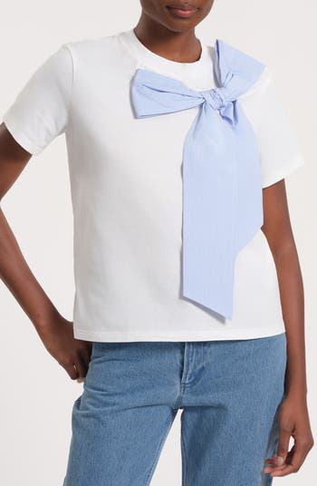 A contrasting striped bow adorns this T-shirt made of supersoft stretch cotton.