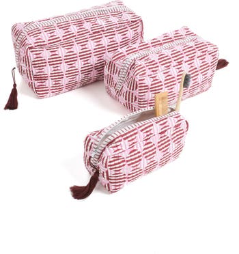 Striped Circles Blockprint Makeup Bag - Set of 3