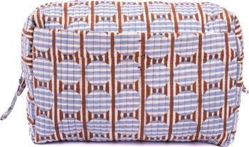 Take a little colour and joy where ever you go. These chic hand block printed cotton wash bags come in two sizes with a wipeable liner to suit your cosmetic and travel needs. Each bag has an external zip pocket and two internal pockets to store all your trinkets. Expertly block-printed by an eighth generation family of artisans in Jaipur, the artisans are stewards of a craft that has been passed down to them generation after generation. From the master block makers who carve the blocks in a village to the hands that print the bag, there are many hands that go into making each piece. By selecting this handmade piece, you contribute to reviving craft and supporting artisan communities. Thank you for supporting our artisans. Material: 100 Cotton (filling and exterior) with a wipeable plastic liner Dimensions: Medium (9.5" x 8.5" x 3" inches), Large (10" x 8.5" x 3.5" inches)