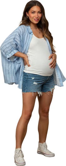 Effortlessly chic and endlessly comfortable, our Striped Collared Oversized Maternity Top is perfect for every stage of your motherhood journey. Crafted in a soft, breathable fabric, this top features classic stripes, a flattering collared neckline, and a relaxed, oversized fit to accommodate your growing bump. Long sleeves with roll-tab detail add a touch of versatility, making it ideal for work, weekends, and everything in between. Pair with jeans or leggings for a fresh, modern look you'll love all pregnancy long—and beyond!