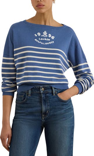 Set sail for lasting comfort in this soft combed-cotton sweater, where yarn-dyed stripes and a chain-stitched anchor logo evoke classic maritime style.