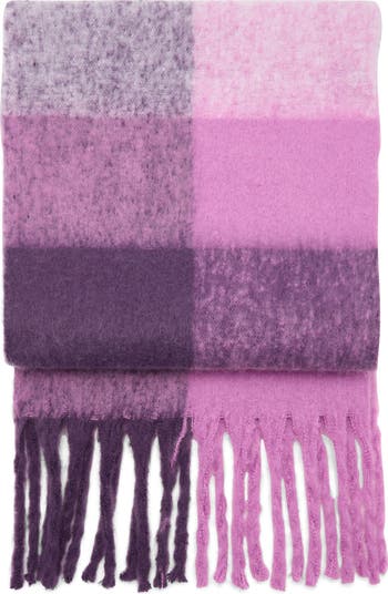 Warm up your look with this cozy scarf featuring bright pops of color and playful fringe.