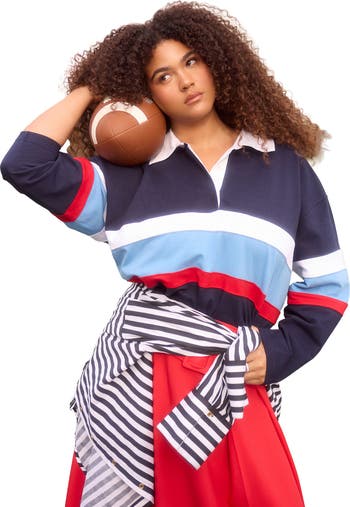 - Bring relaxed polish to your rotation with this oversized striped polo shirt. A soft French terry knit and dropped shoulders make it equal parts sporty and refined.