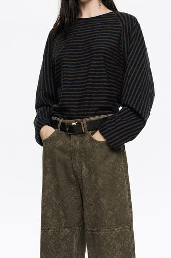 Long T-shirt with crew neck and long batwing raglan sleeve