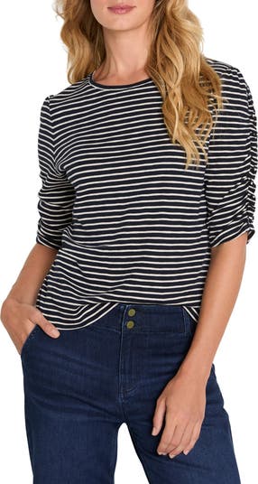 Striped Ruched Sleeve Top