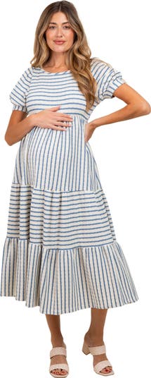 Effortlessly chic, our Striped Short Sleeve Tiered Maternity Maxi Dress is your new go-to! Made from soft, breathable fabric, this maxi dress features stylish horizontal stripes, flattering tiered layers, and a comfortable stretch waist designed to fit throughout pregnancy. The short sleeves and flowy skirt keep you cool and comfortable, whether you’re out for brunch, at your baby shower, or running errands. Pair with flats or sandals for a relaxed look. Stay stylish and comfortable all through your motherhood journey with this timeless must-have!