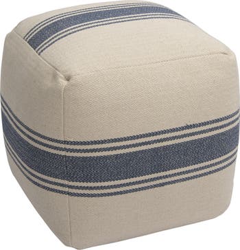 Striped Square Canvas Pouf, Blue