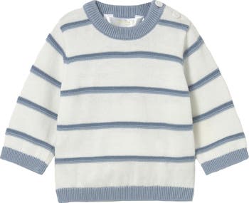 A cozy long-sleeved sweater designed for little ones, featuring crisp fabric with soft stripes and ribbed trims. The shoulder buttons make dressing easy, while the breathable knit ensures comfort during cooler days.